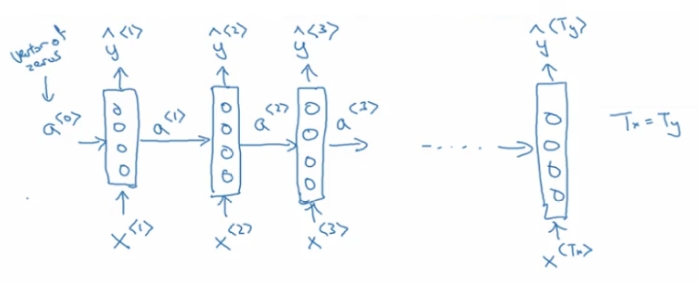 In this problem Tx = Ty. In other problems where they aren't equal, the RNN architecture may be different.