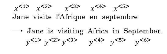 Tx(i) the input sequence length for training example i. It can be different across the examples. Similarly for Ty(i) will be the length of the output sequence in the i-th training example.