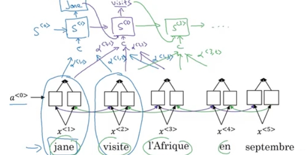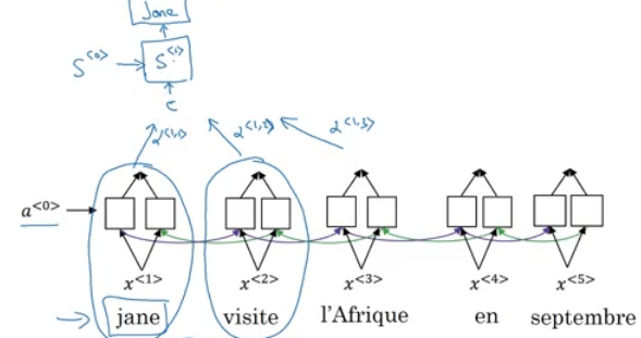 Like for example we payed attention to the first three words through alpha<1,1>, alpha<1,2>, alpha<1,3>